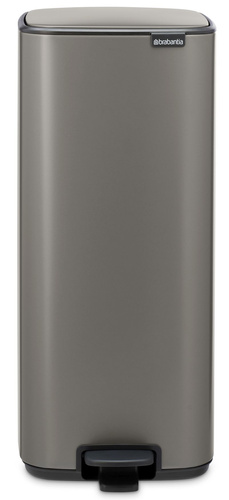 - Kosz 30l Bo Platinum z pedałem holenderskiej marki BRABANTIA wykonany został z wysokiej jakości stali nierdzewnej w kolorze platynowym. Delikatnie zamykająca się pokrywa i łatwa obsługa za pomocą pedału. Kosz wyposażony w wyjmowany, wewnętrzny kosz.