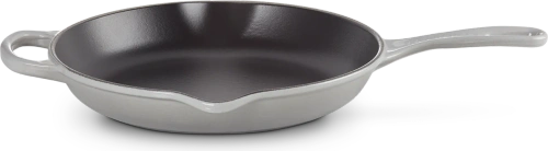 - Patelnia została wykonana z żeliwa, dlatego można jej używać zarówno na kuchence, jak i w piekarniku. Jej ergonomiczny uchwyt ułatwia przenoszenie, a dwa dzióbki ułatwiają wylewanie np. tłuszczu. Sprawdzi się również do serwowania na stole.