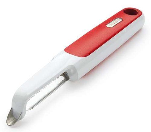 Obierak do pomidorów czerwony szwajcarskiej marki ZYLISS posiada dwustronne ząbkowane ostrze idealne do obierania miękkich owoców i warzyw - takich jak kiwi, brzoskwinia, pomidor, szparagi.